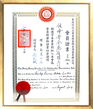香港珠石玉器金银首饰业商会 会员证书